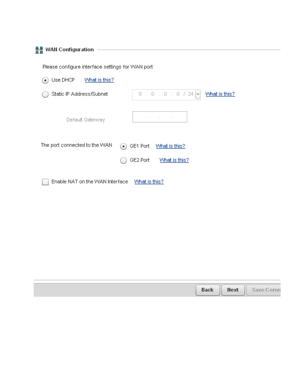 15. Set the following DHCP and Static IP Address/Subnet information for the WAN interface: