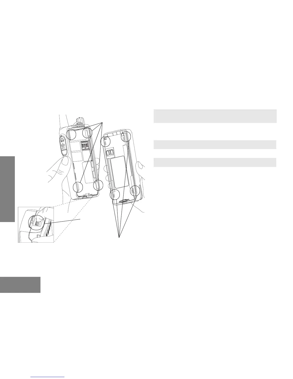 1. Odciągnij zatrzask akumulatora od radiotelefonu.