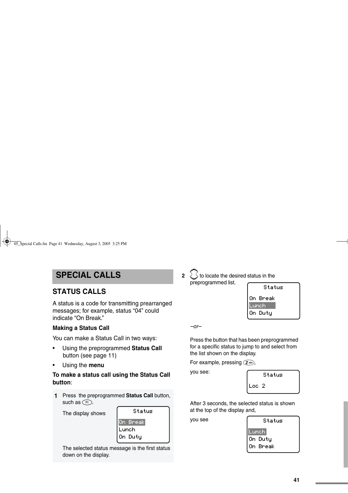 05_Special Calls.fm Page 41 Wednesday, August 3, 2005 3:25 PM