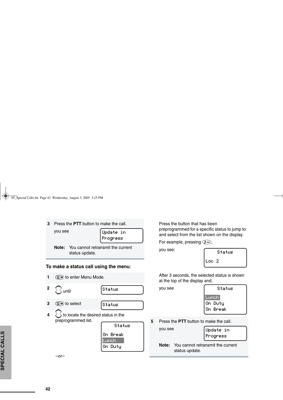 05_Special Calls.fm Page 42 Wednesday, August 3, 2005 3:25 PM