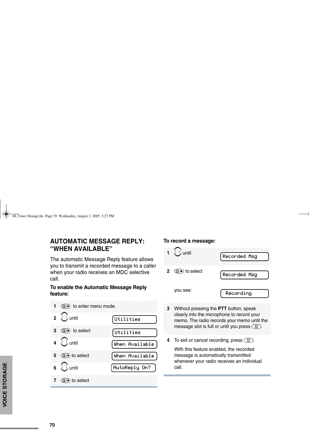 08_Voice Storage.fm Page 70 Wednesday, August 3, 2005 3:27 PM