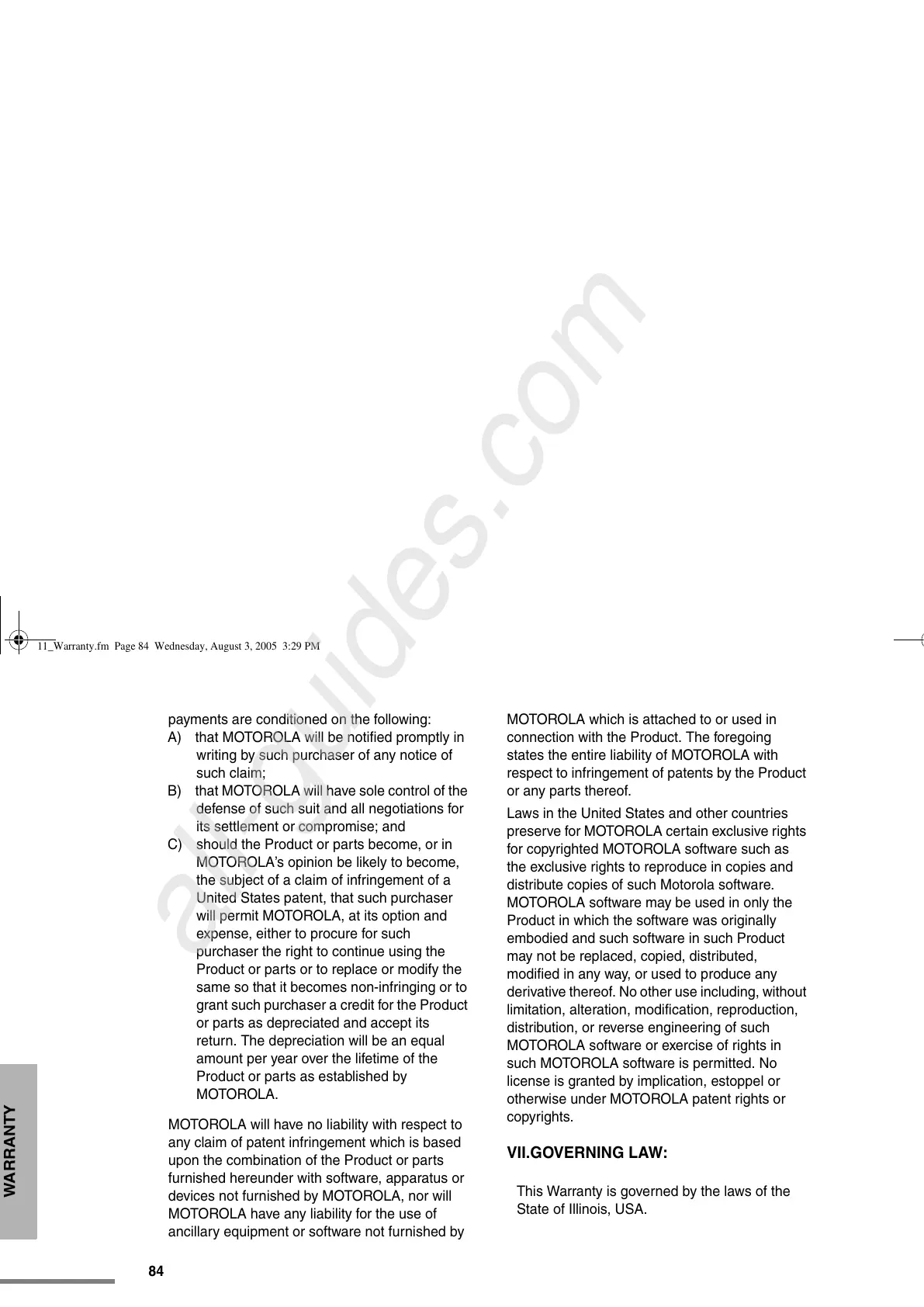 11_Warranty.fm Page 84 Wednesday, August 3, 2005 3:29 PM
