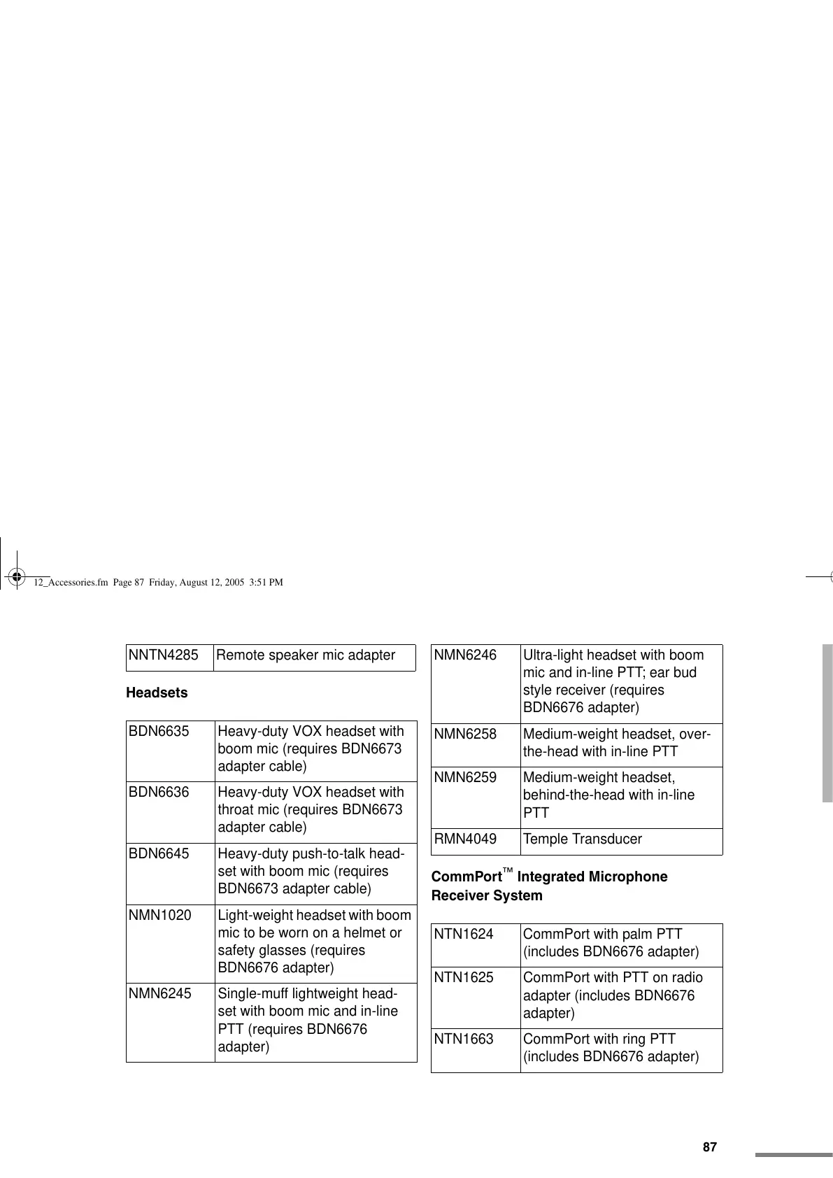 12_Accessories.fm Page 87 Friday, August 12, 2005 3:51 PM