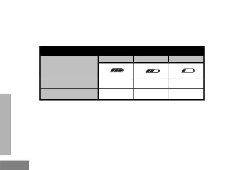 The battery meter located in the upper left corner of the display indicates how much battery power