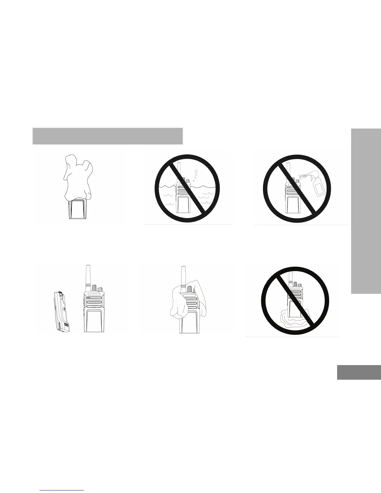 Do not immerse in water Do not use alcohol or