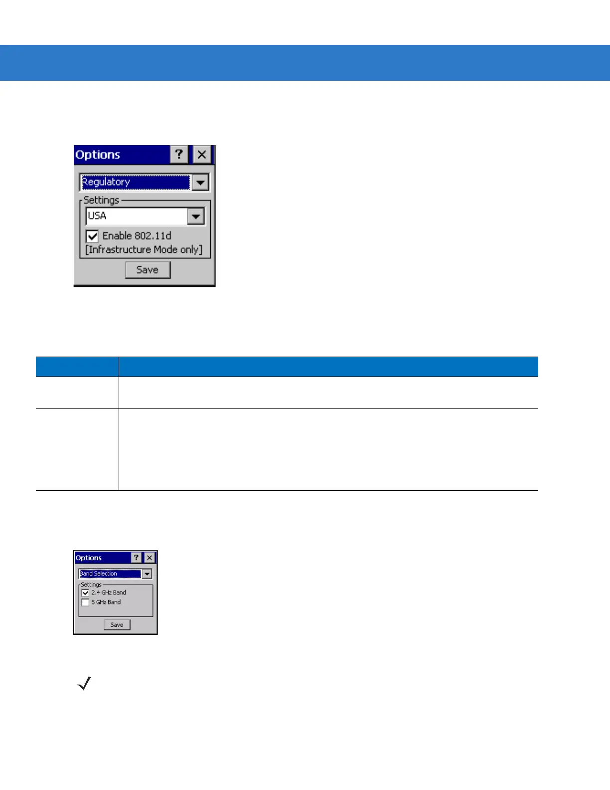 Settings Select a country from the drop-down list. If the Enable 802.11d check box is not selected, a