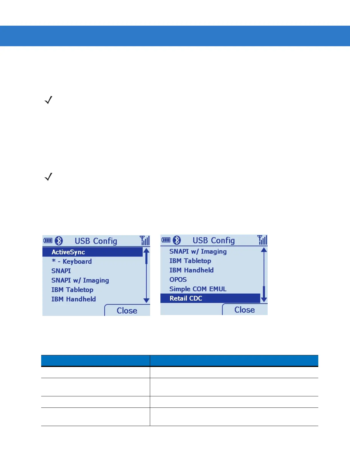 NOTE ActiveSync, SNAPI, SNAPI with imaging apply only to the MT20X0. If selected and paired to the cradle,