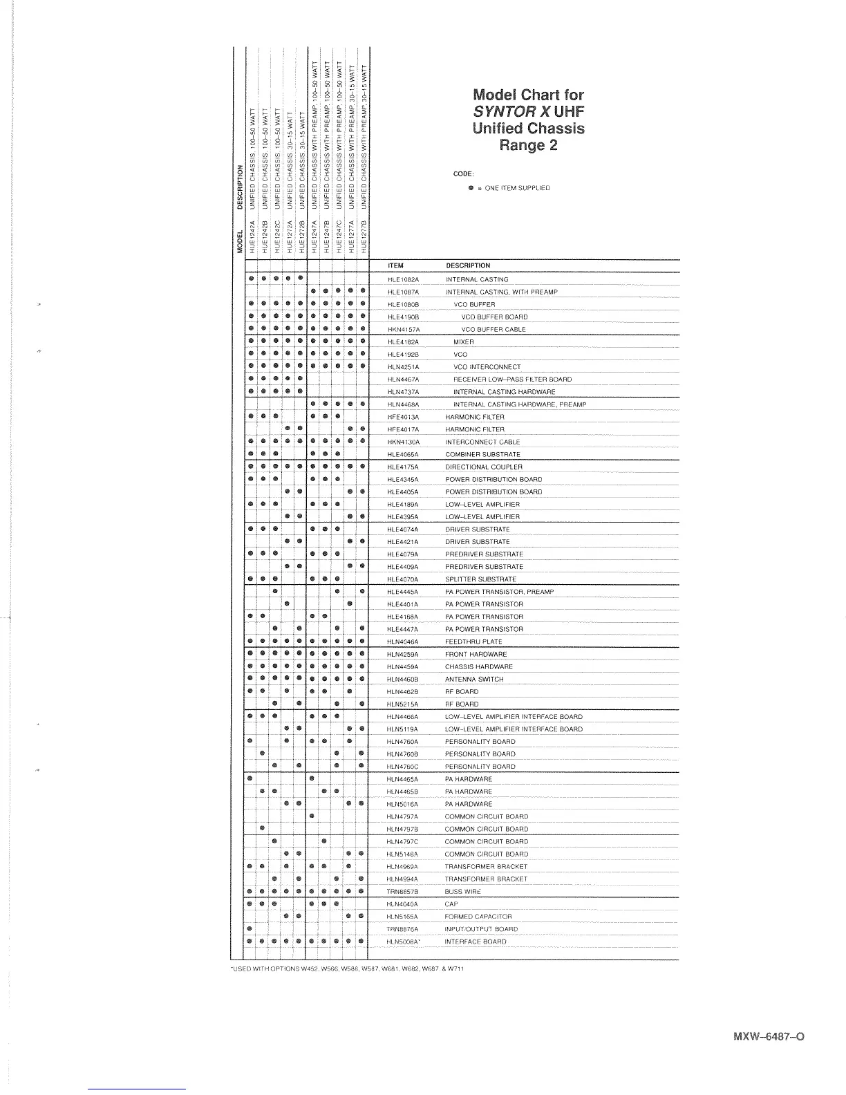 Motorola SYNTOR X - SYNTOR X UHF Unified Chassis Model Charts; Range 2 Unified Chassis