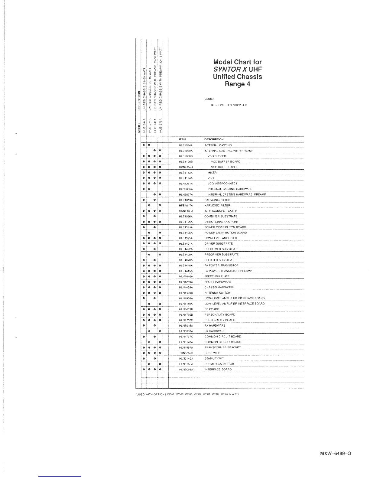 Motorola SYNTOR X - SYNTOR X UHF Unified Chassis Model Charts; Range 4 Unified Chassis