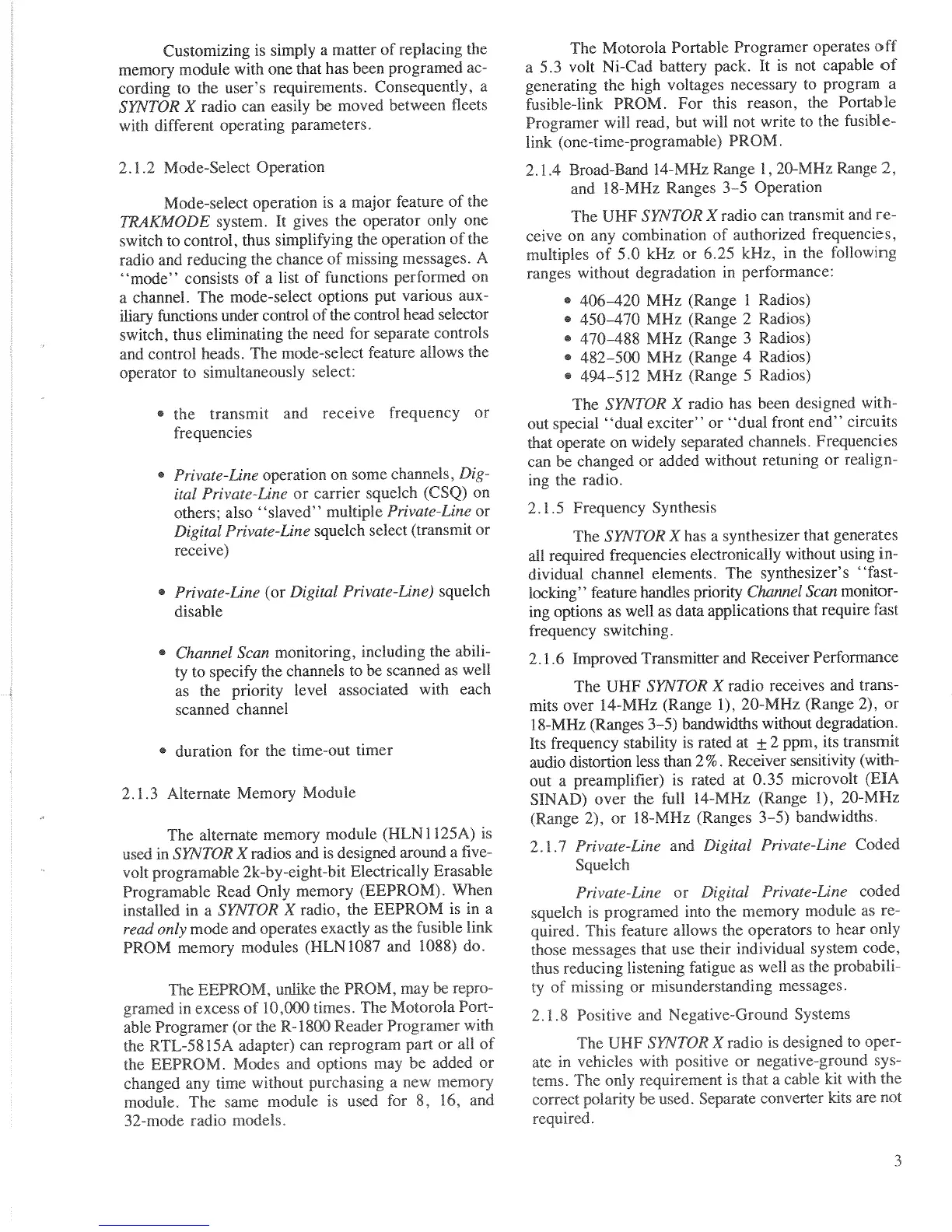 Motorola SYNTOR X - Advanced SYNTOR X Features; Mode-Select Operation; Alternate Memory Module; Broad-Band Frequency Operation