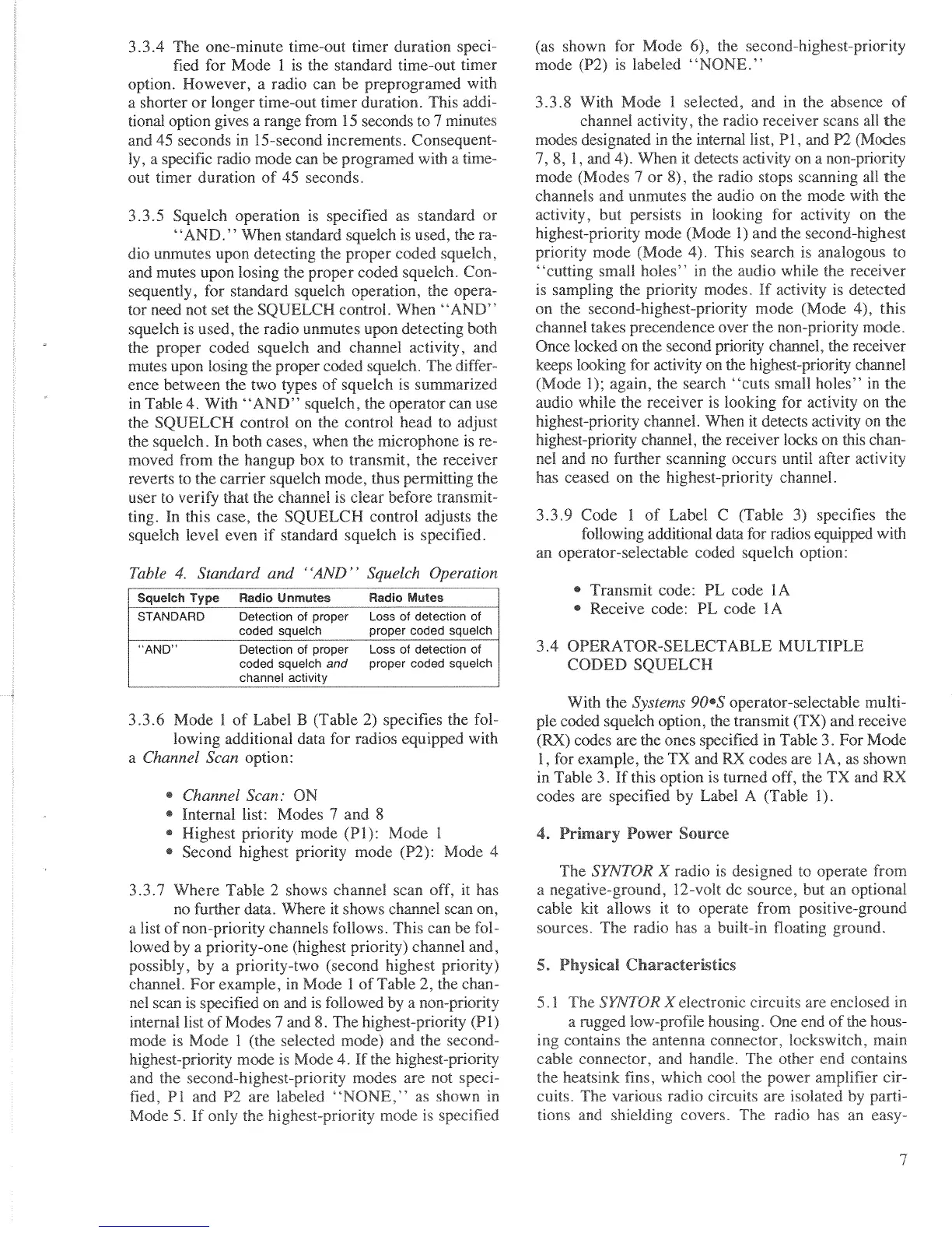 Motorola SYNTOR X - SYNTOR X Modes and Operations; Time-Out Timer Duration Options; Standard vs. AND Squelch; Channel Scan Mode Details
