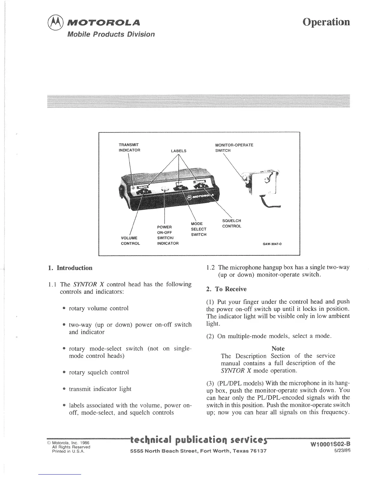 Motorola SYNTOR X - SYNTOR X Operation Guide; Control Head Overview; Receiving a Signal