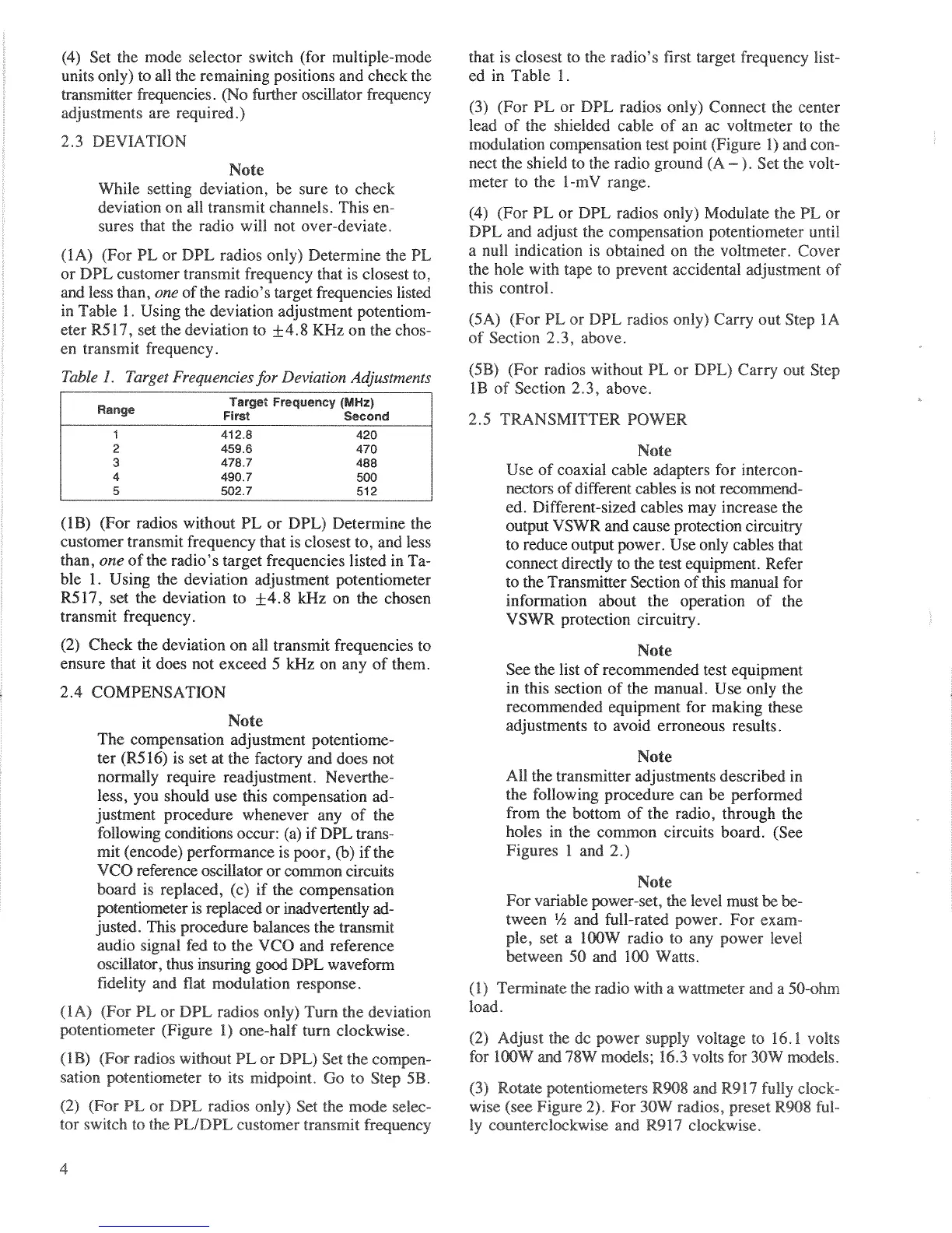 Motorola SYNTOR X - Transmitter Adjustment Procedures; Deviation Adjustment; Compensation Adjustment; Transmitter Power Adjustment