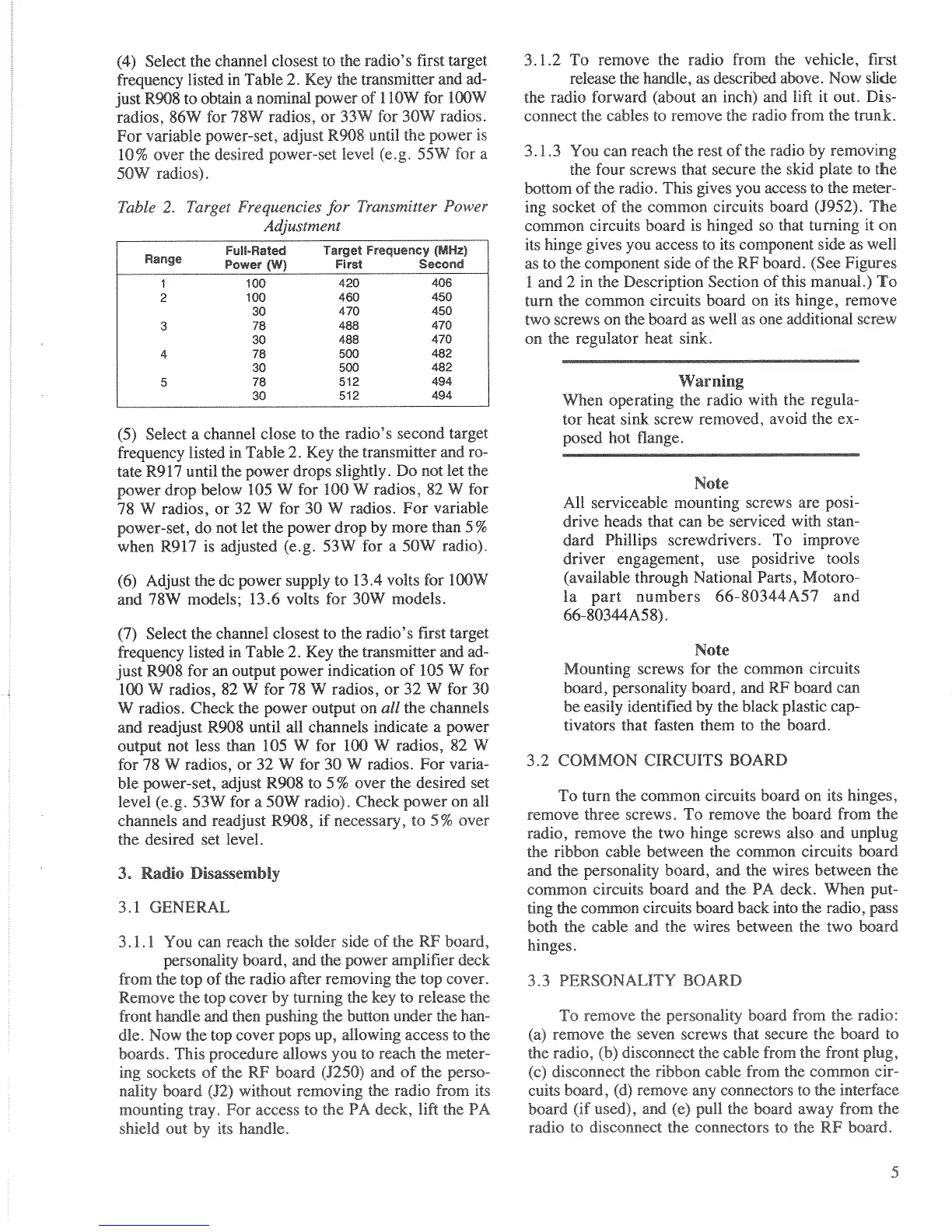 Motorola SYNTOR X - SYNTOR X Radio Disassembly; General Disassembly Access; Common Circuits Board Removal; Personality Board Removal