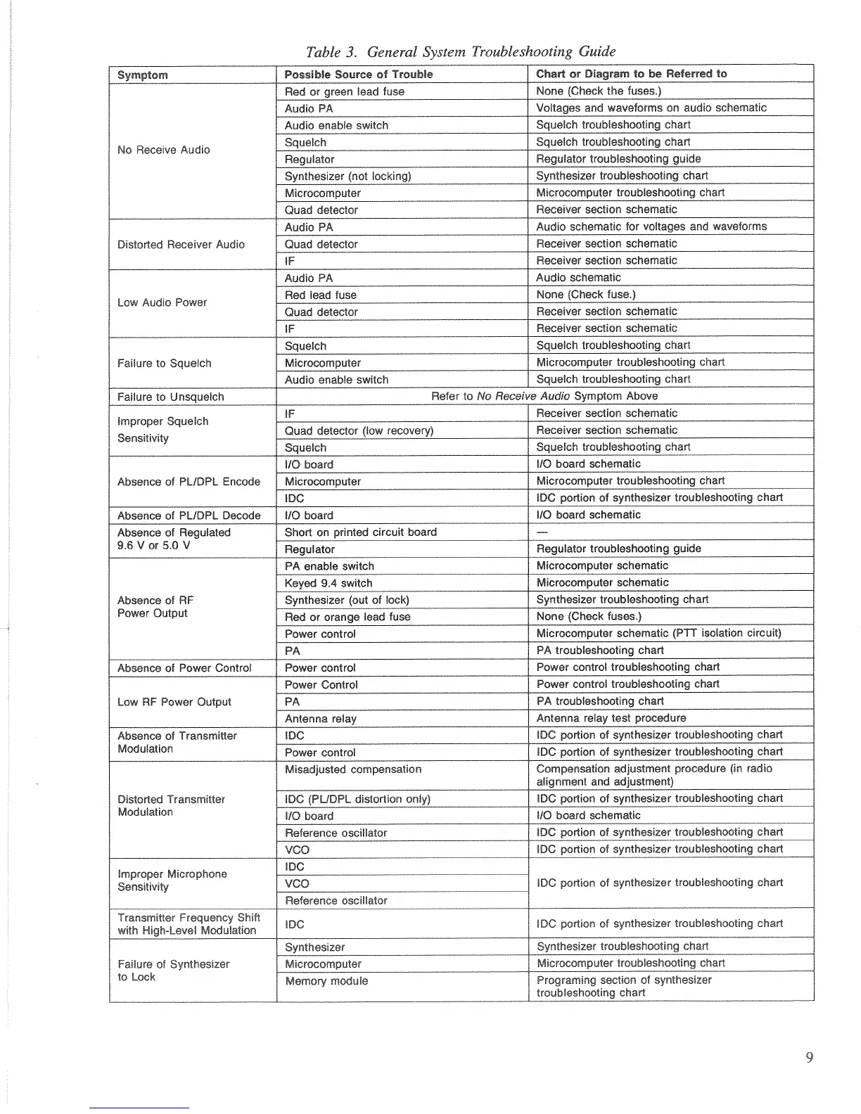 Motorola SYNTOR X - General System Troubleshooting Guide (Continued); Troubleshooting Symptom Analysis (Continued)