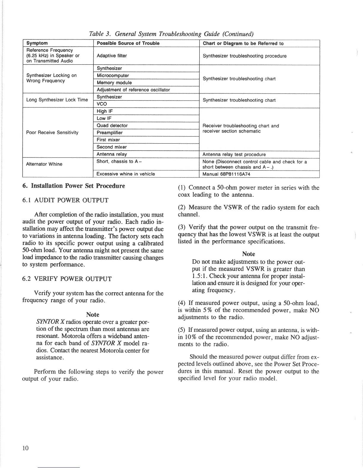 Motorola SYNTOR X - Installation Power Set Procedures; Audit Power Output; Verify Power Output