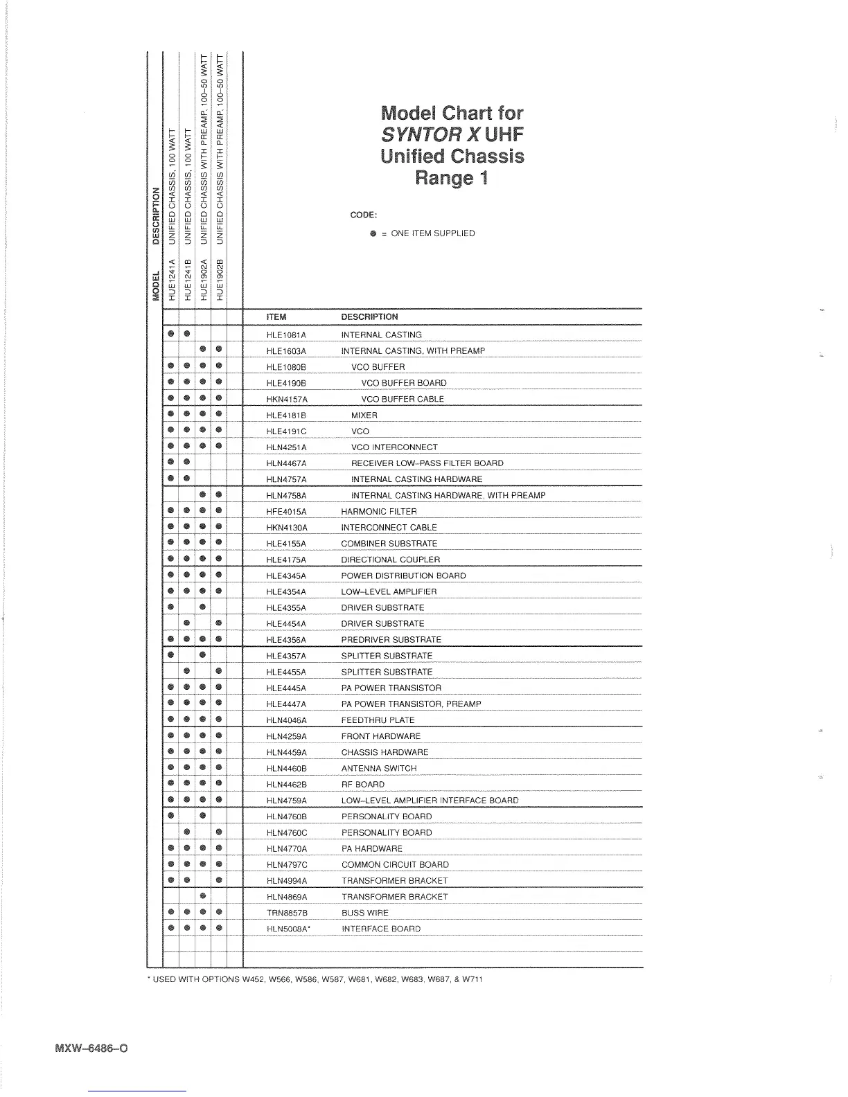 Motorola SYNTOR X - SYNTOR X UHF Unified Chassis Model Charts; Range 1 Unified Chassis