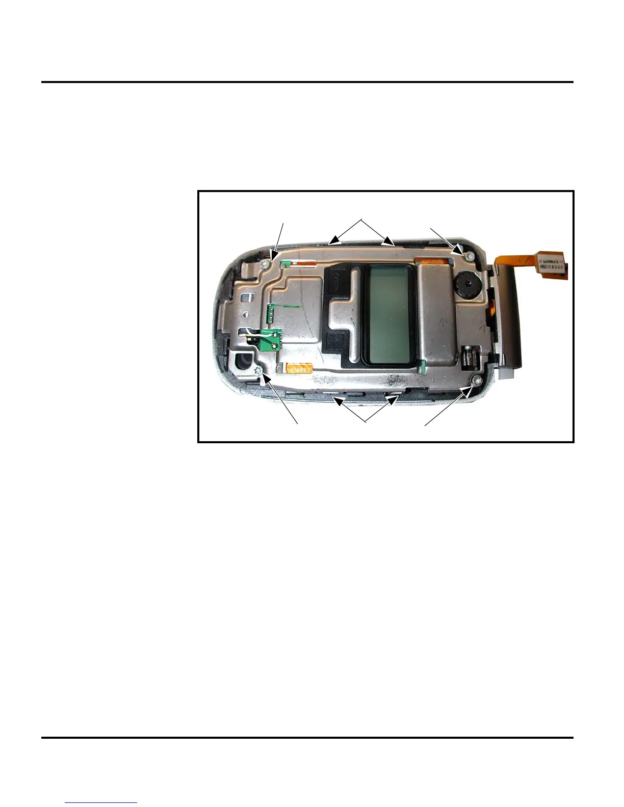 1. Remove the battery cover, battery, SIM, antenna, rear housing, transceiver