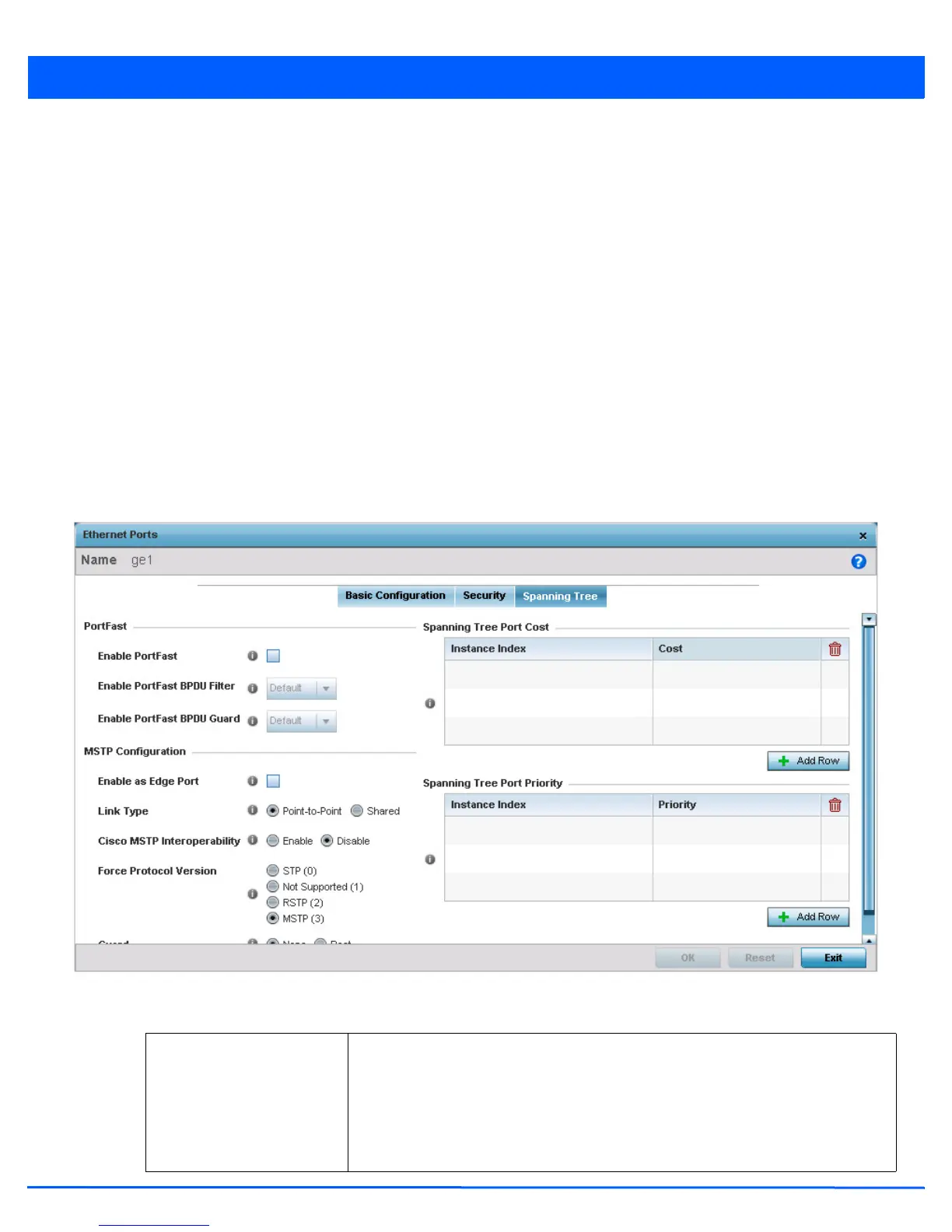 Figure 5-15 Ethernet Ports - Spanning Tree tab