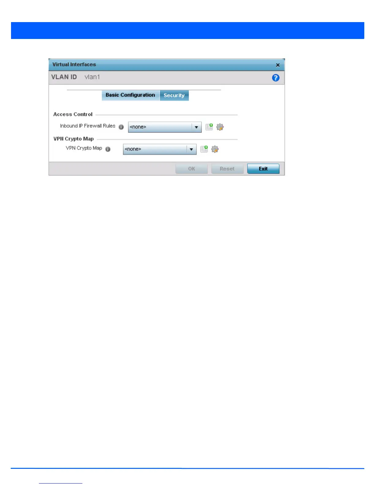 14. Use the VPN Crypto Map drop-down menu to select and assign a VPN crypto map entry to this virtual interface. The VPN