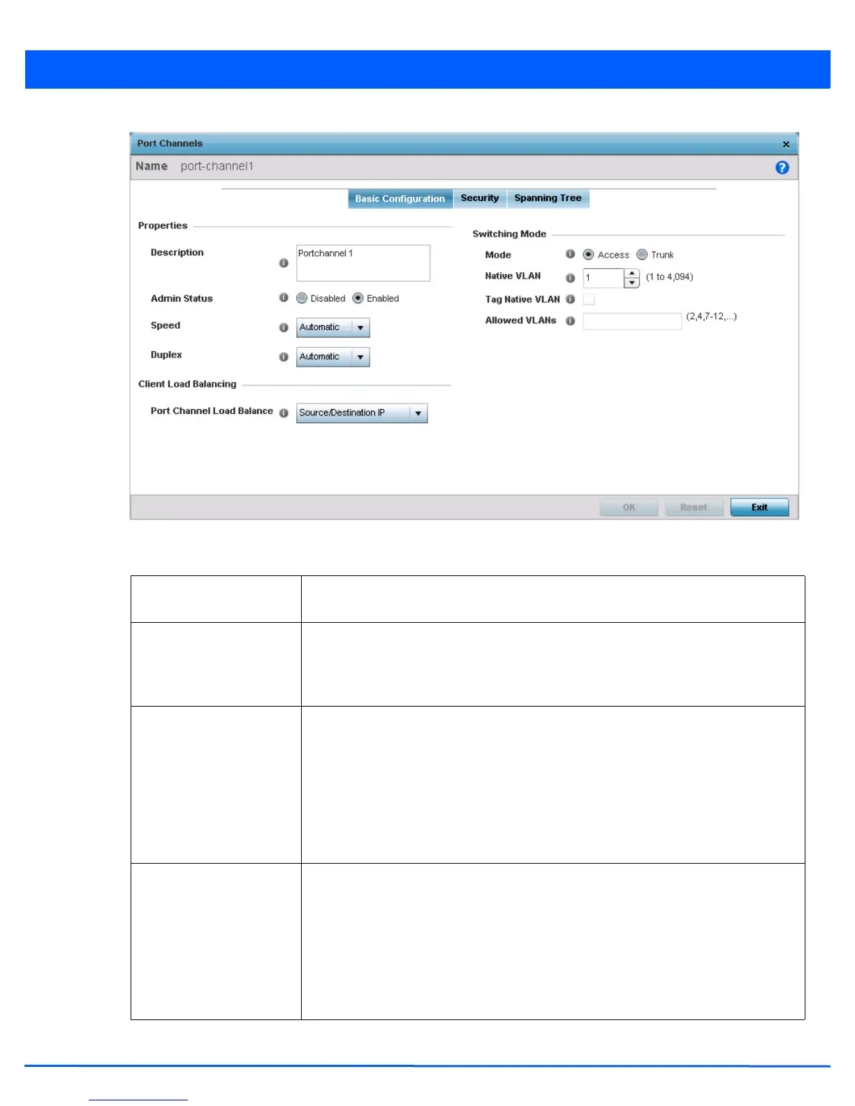 Description Enter a brief description for the port channel (64 characters maximum). The description