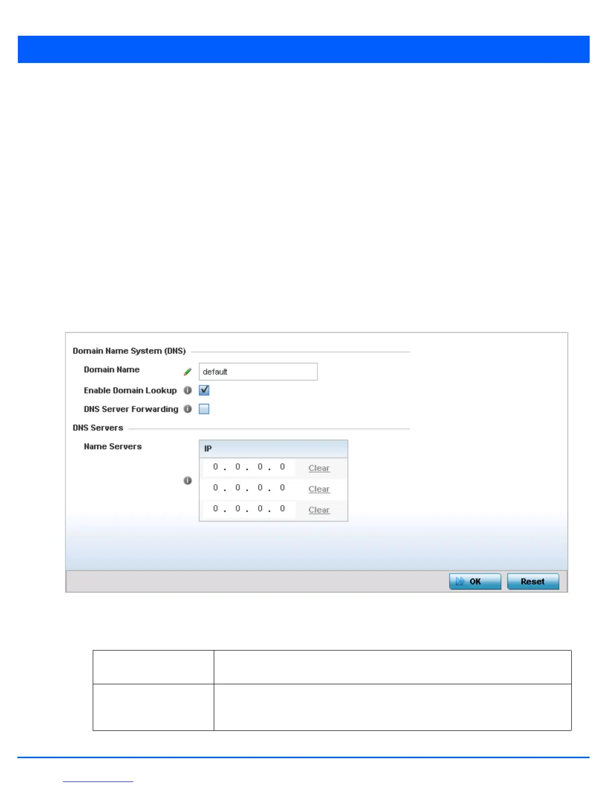 Enable Domain Lookup Select this option to enable DNS. When enabled, human friendly domain names can be