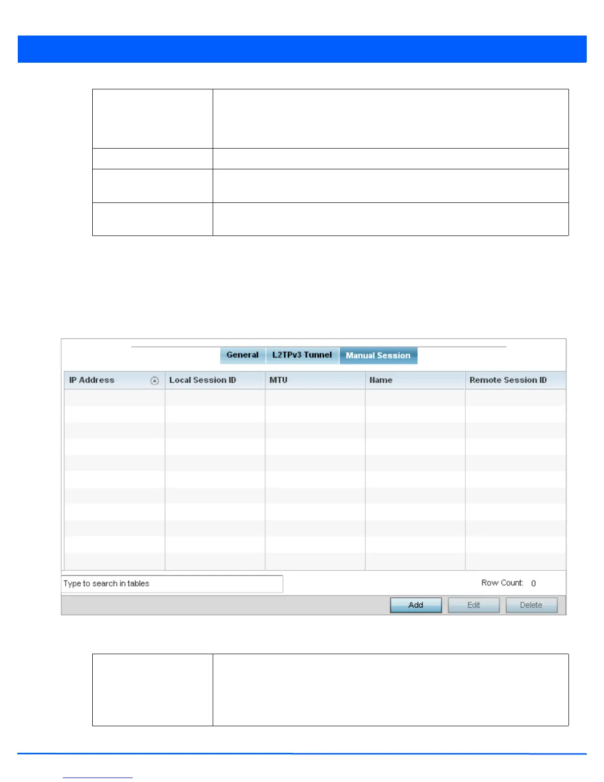 Figure 5-36 Network - L2TPv3 screen - Manual Session tab