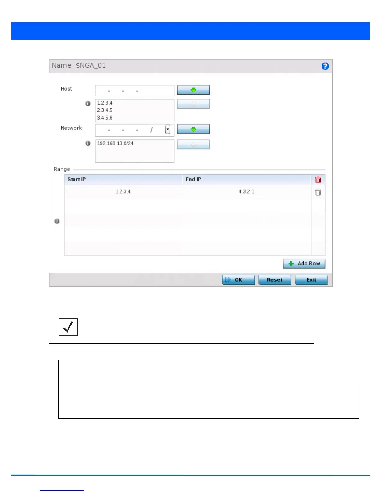 10. Select OK when completed to update the network group alias rules. Select Reset to revert the screen back to its last saved