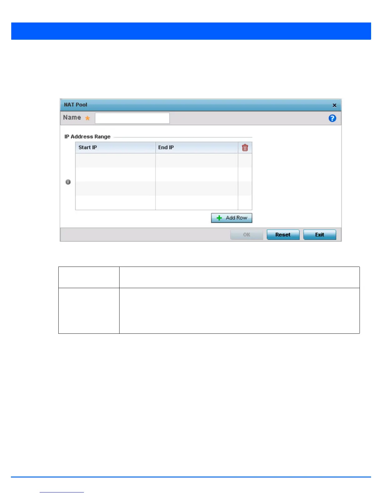 8. Select OK to save the changes made to the profile’s NAT Pool configuration. Select Reset to revert to the last saved