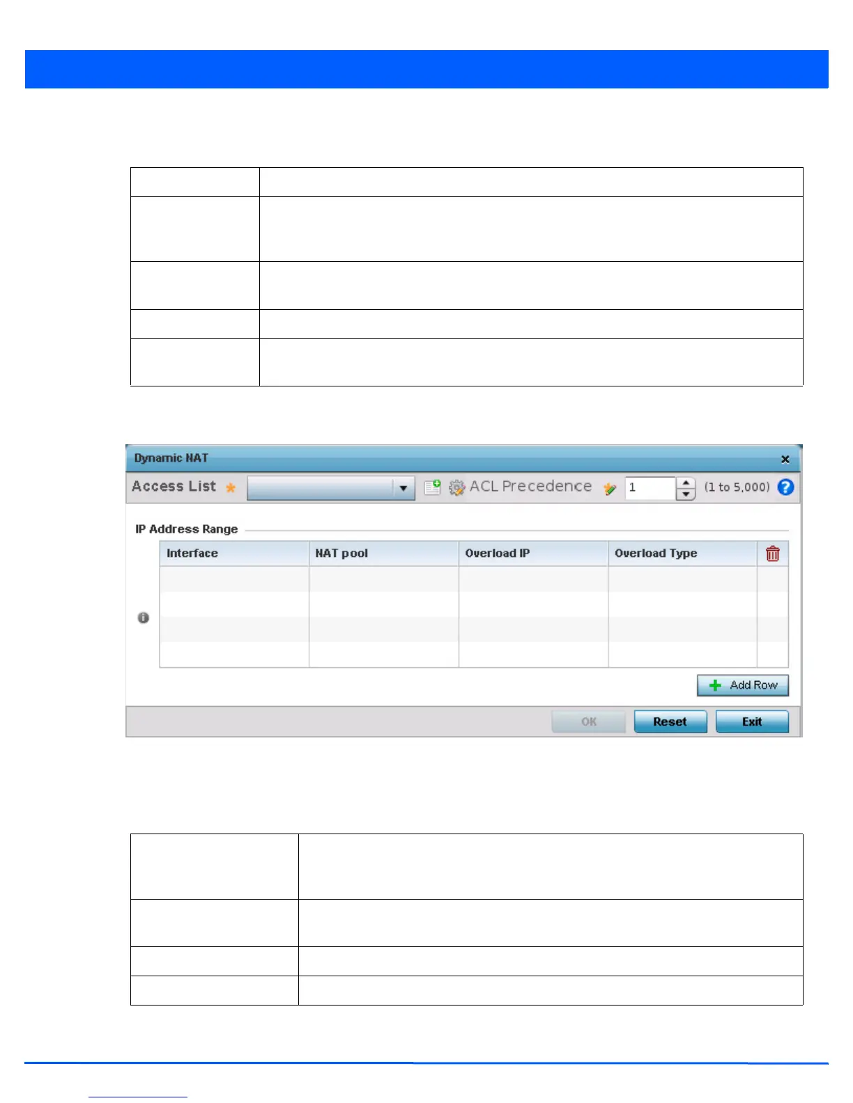 Overload Type Lists the overload type used with the listed IP ACL rule. Set as either NAT Pool, One Global