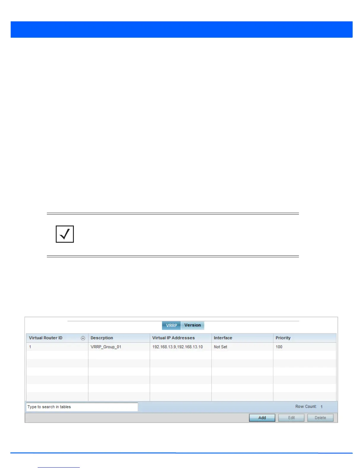 NOTE: VRRP support is available only on AP7131 model access point, and is not