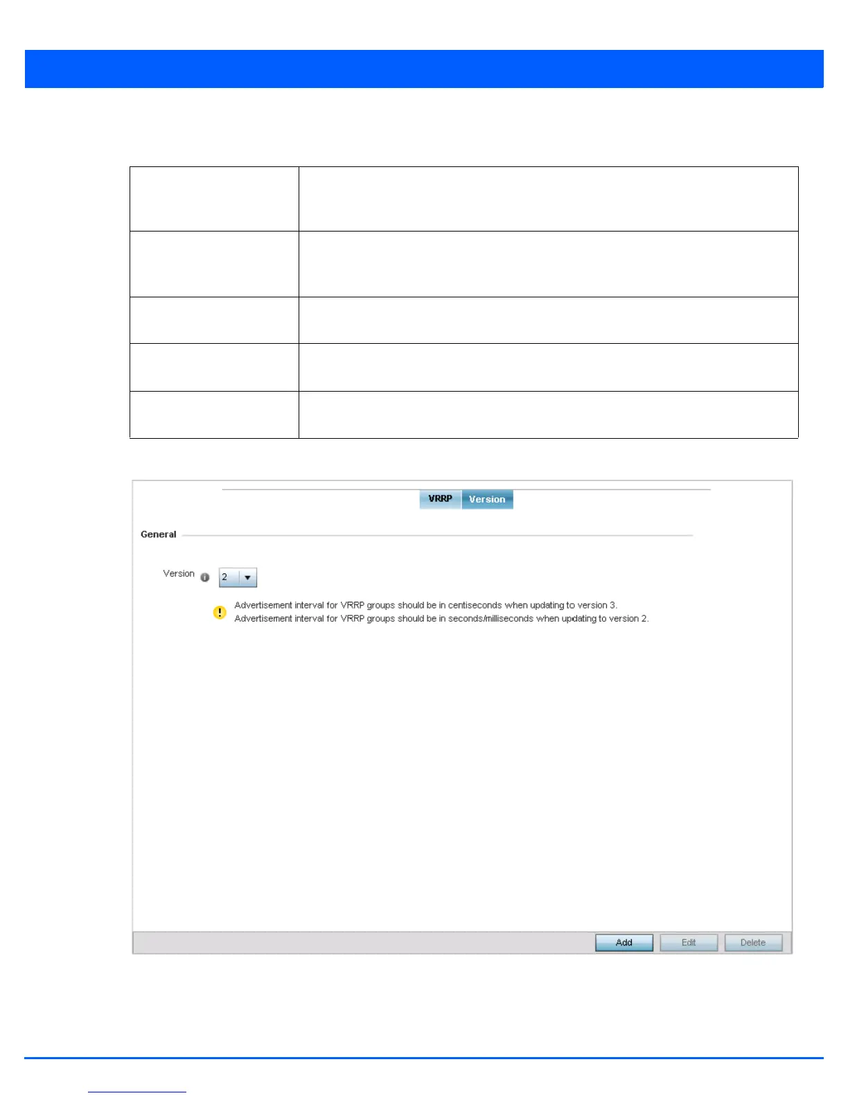 6. Select the Version tab to define the VRRP version scheme used with the configuration.