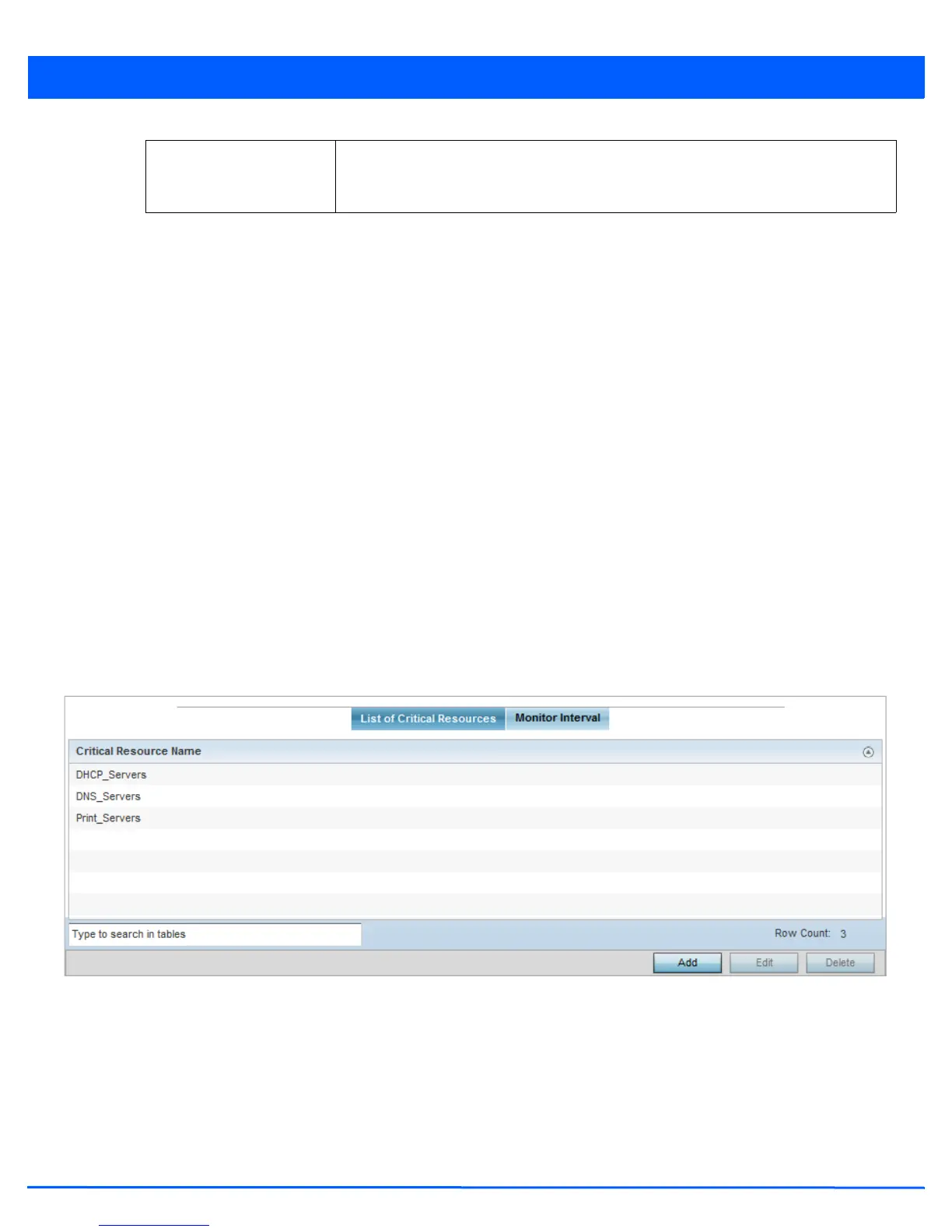 network. The critical resource feature allows for the continuous monitoring of these addresses. A critical resource, if not