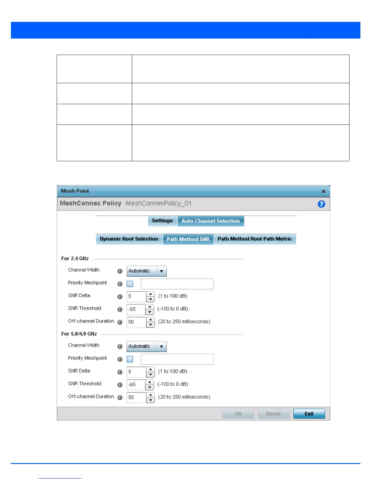 10. Click the Path Method SNR tab to configure the signal to noise ratio values when selecting the path to the mesh point