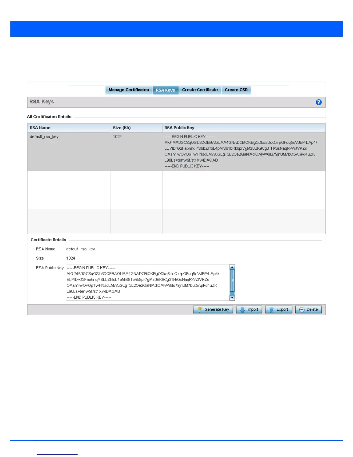 2. Select RSA Keys from the upper, left-hand side of the Certificate Management screen.