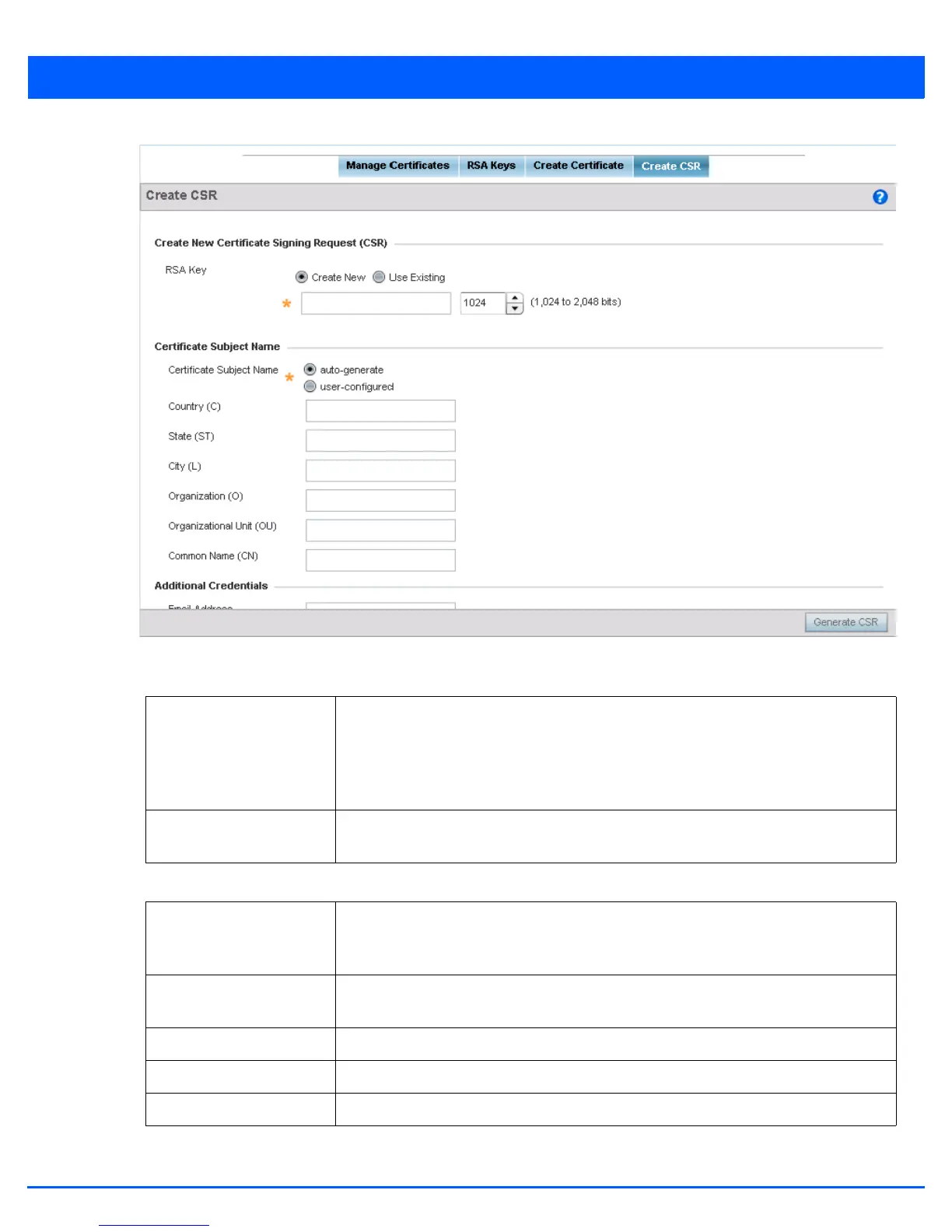 3. Set the following Create New Certificate Signing Request (CSR) configuration parameters: