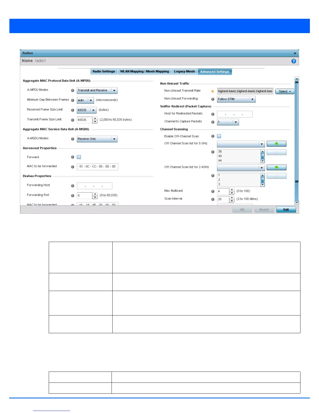 24. Set or override the following profile Aeroscout Properties for the selected access point radio.