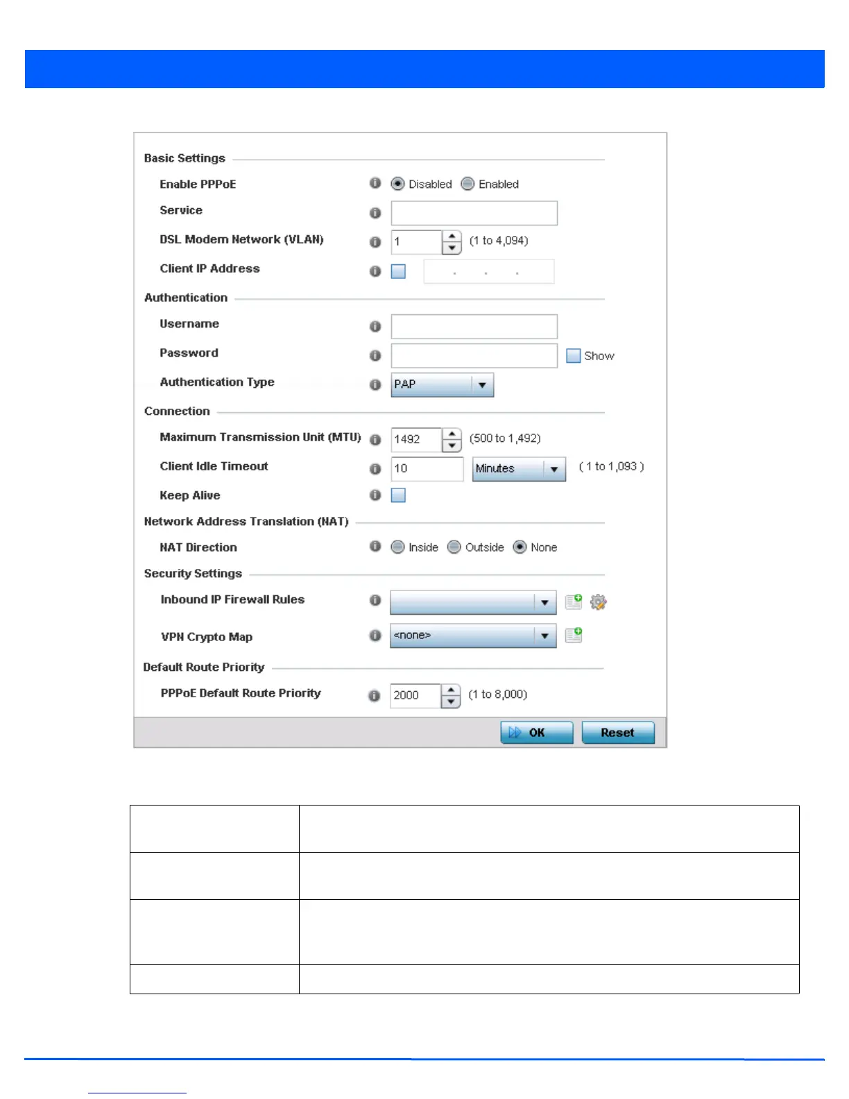 Enable PPPoE Select Enable PPPoE to support a high speed client mode point-to-point connection using
