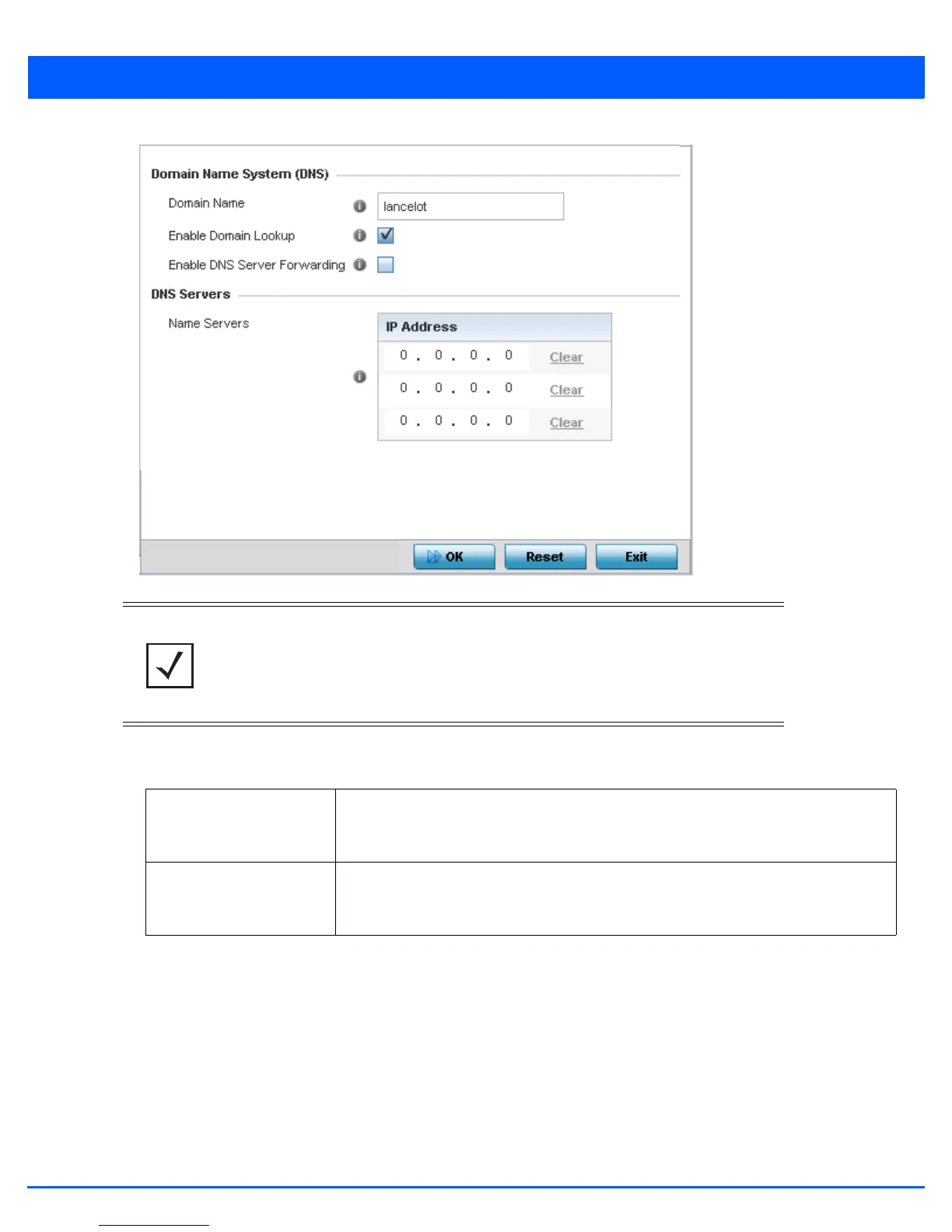 9. Select OK to save the changes and overrides made to the DNS configuration. Select Reset to revert to the last saved