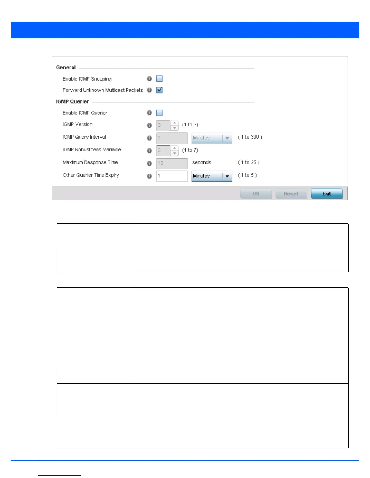 Enable IGMP Querier Select this option to enable IGMP querier. IGMP snoop querier is used to keep host