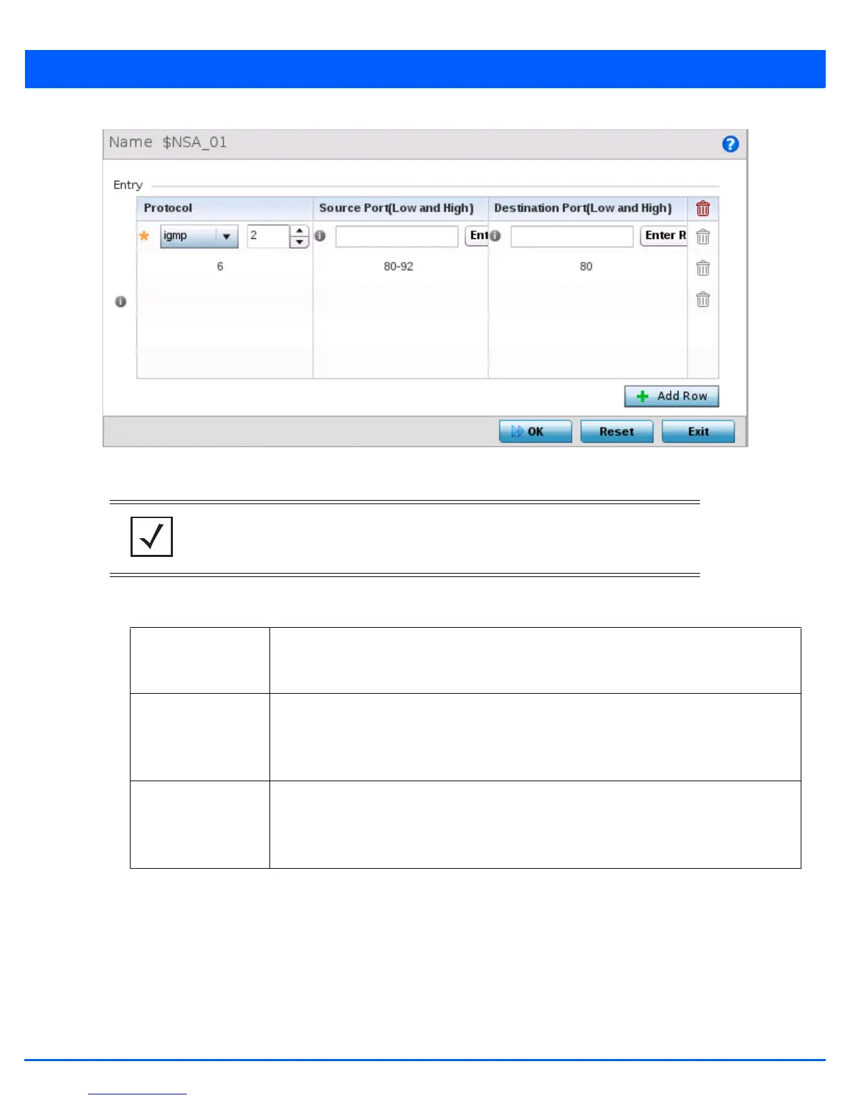 10. Select OK when completed to update the network service alias rules. Select Reset to revert the screen back to its last