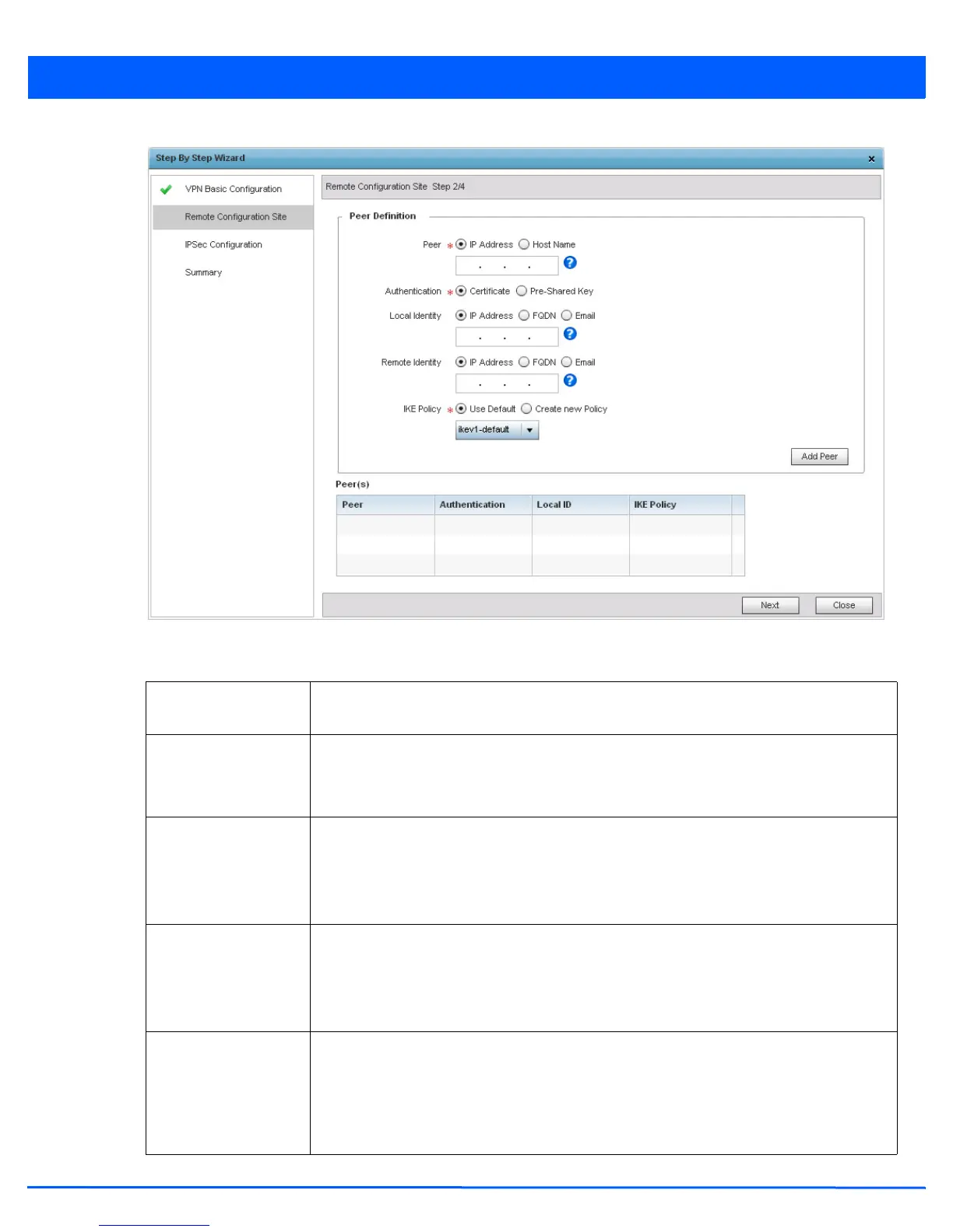 Peer Select the type of peer for this device when forming a tunnel. Peer information can be either