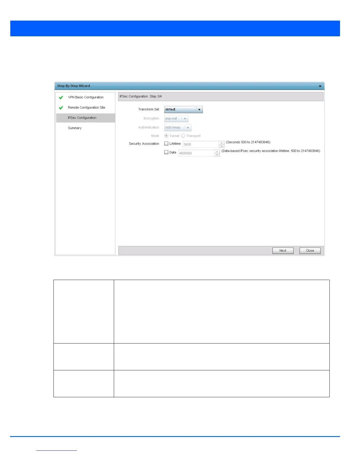 8. Configure the following IPSec parameters: