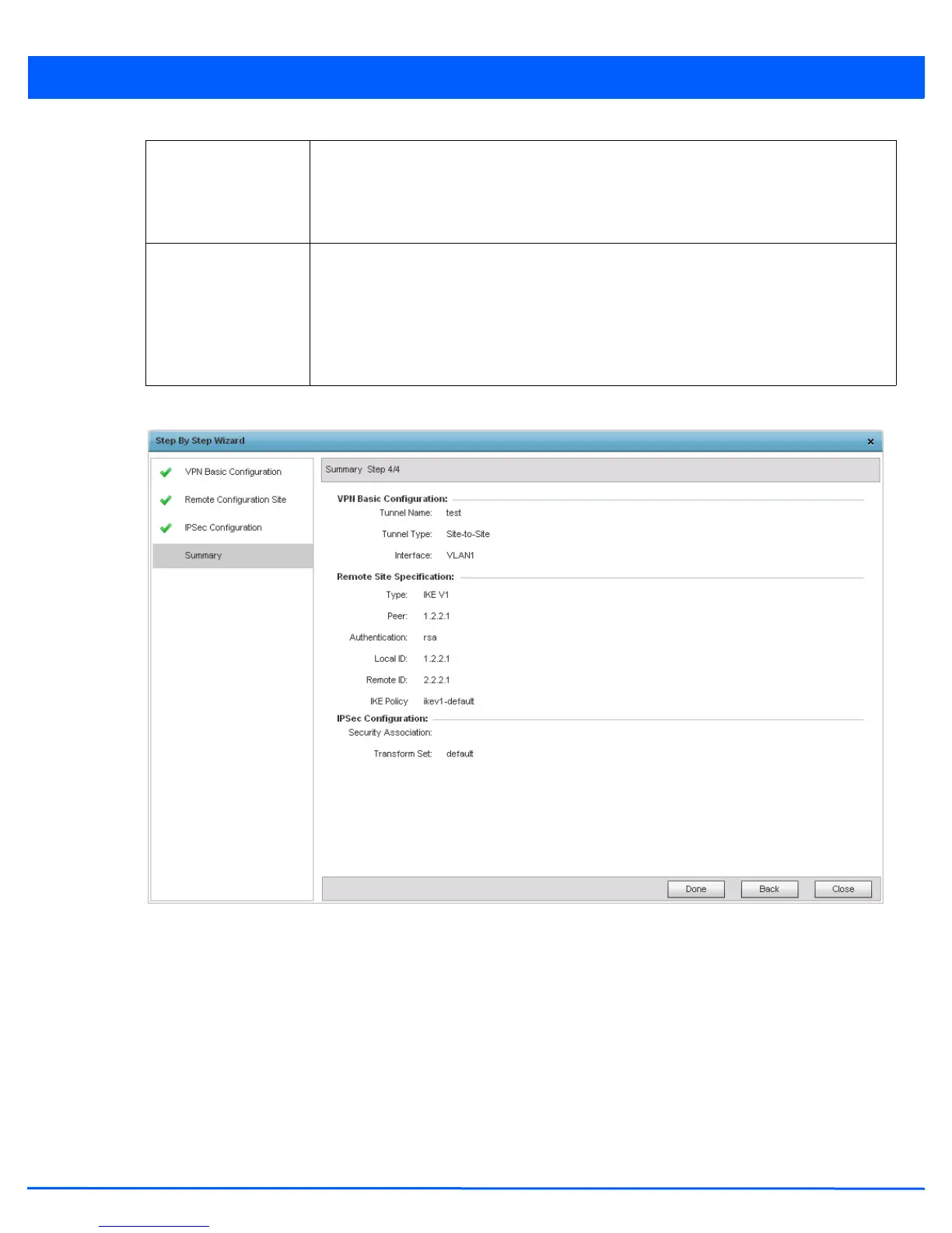 screen for making modifications to the configuration. Click Close to close the wizard without creating a VPN Tunnel.