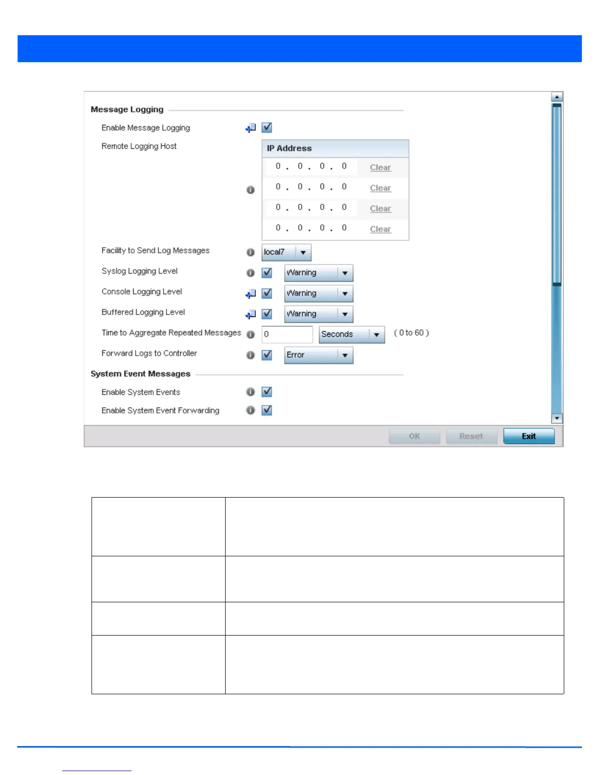 Remote Logging Host Use this table to define numerical (non DNS) IP addresses for up to three external