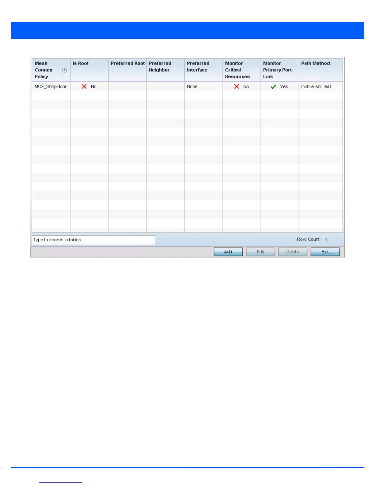 5. Select Add to create a new mesh point configuration or Edit to override an existing one. Select Delete to delete a mesh