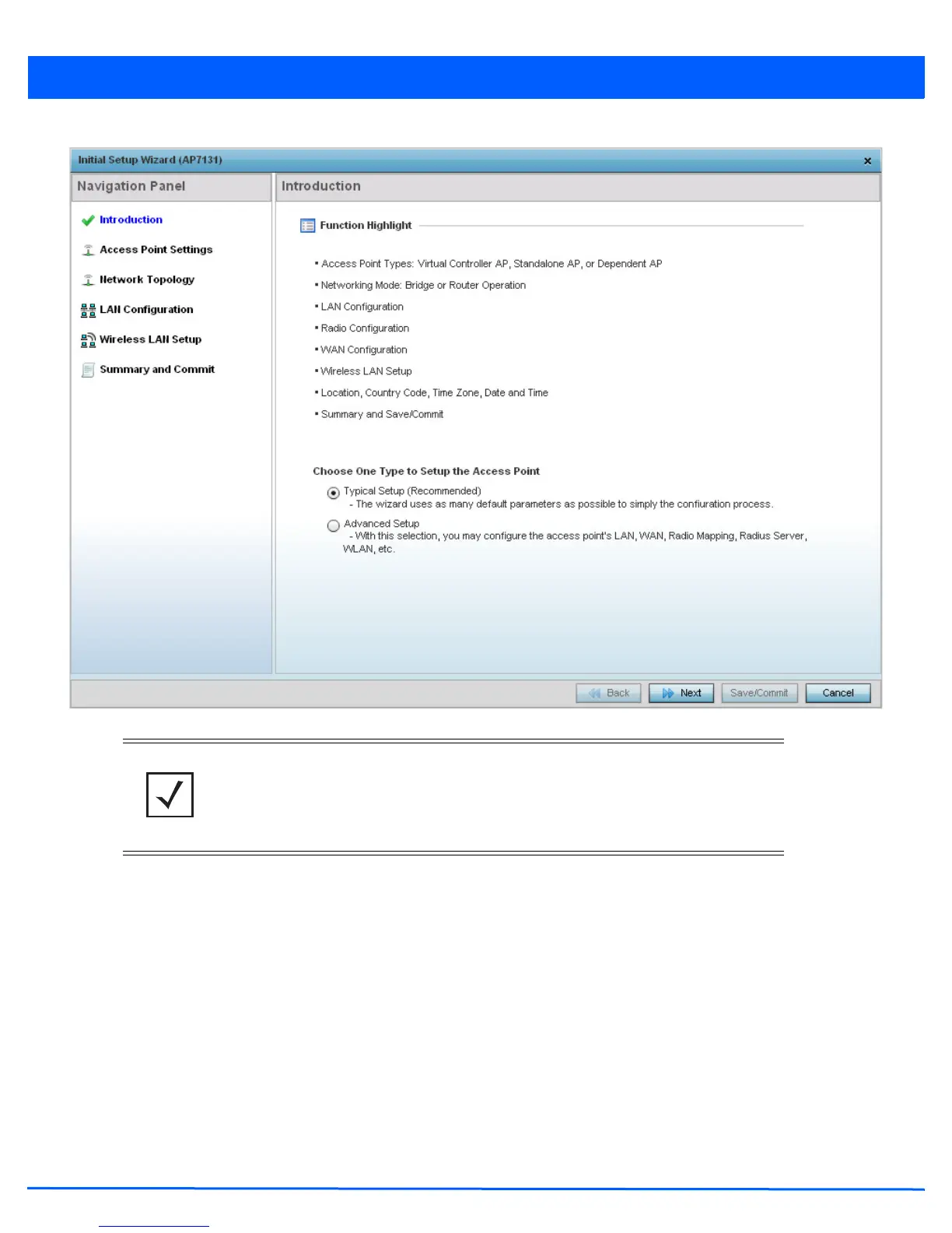 NOTE: The Initial Setup Wizard displays the same pages and content for each access