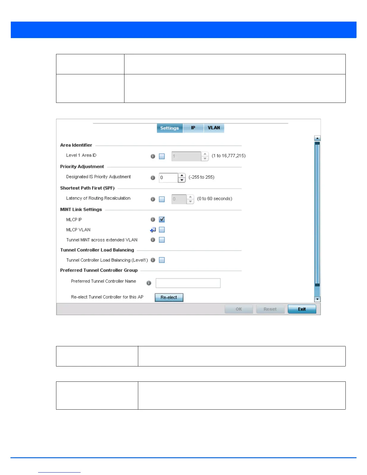 16. Refer to the Area Identifier field to define or override the Level 1 and Level 2 Area IDs used by the profile’s MINT