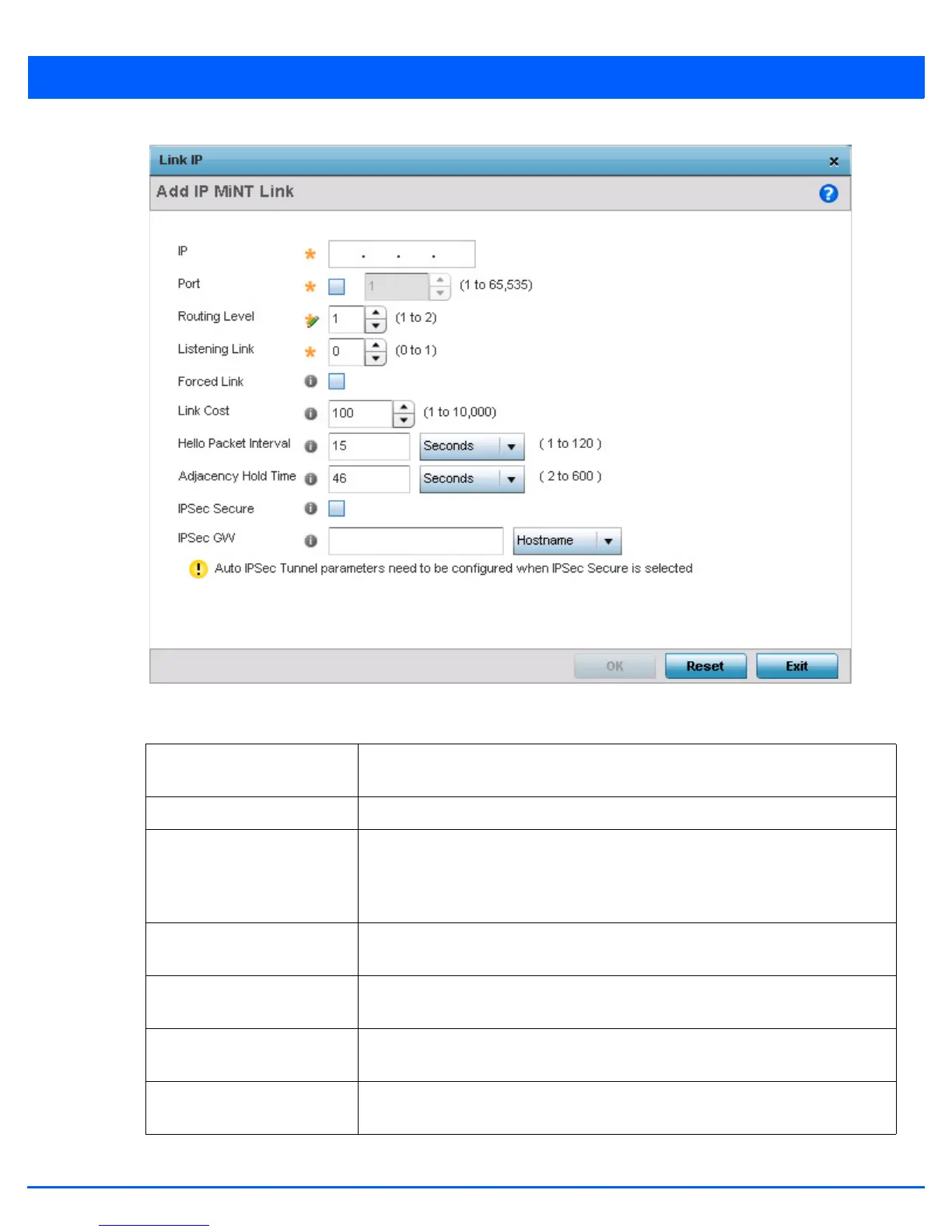 25. Set the following Link IP parameters to complete the MINT network address configuration: