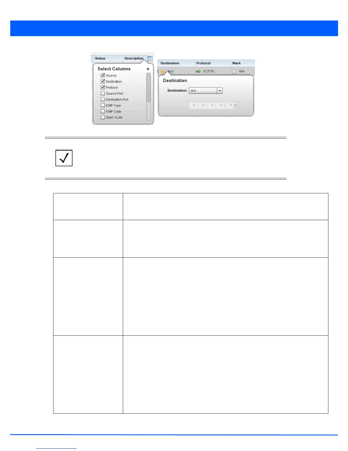 current settings adjusted by selecting that IP ACL’s column to display a pop-up to adjust